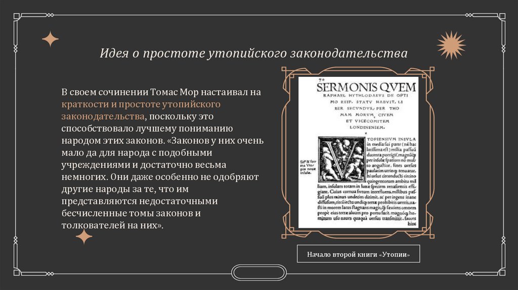 Идея о простоте утопийского законодательстваВ своем сочинении Томас Мор настаивал на