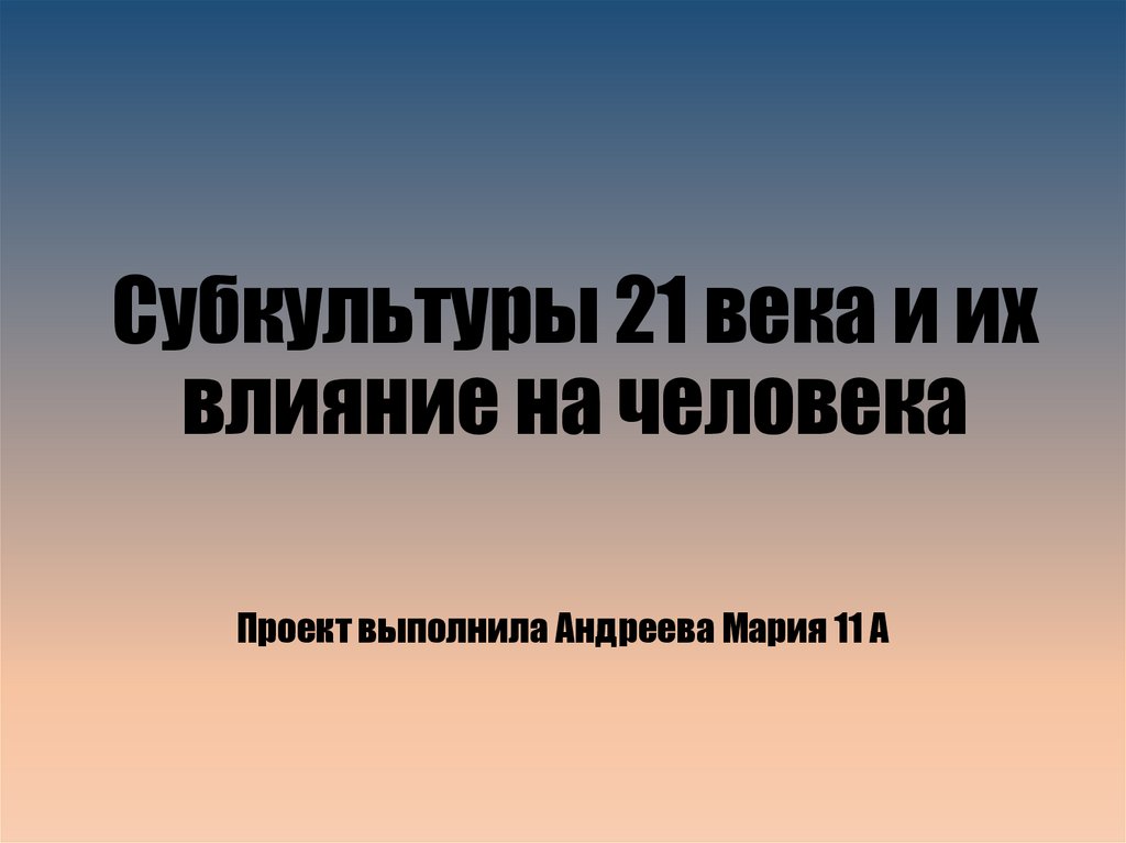 Субкультуры 21 века и ихвлияние на человека