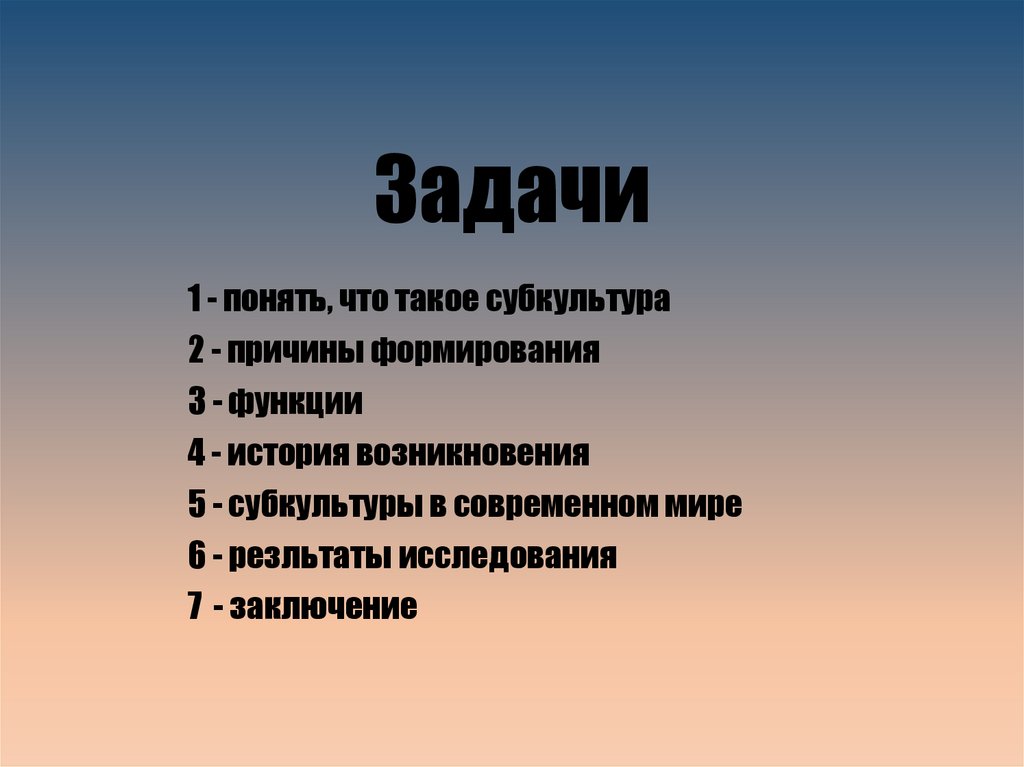 Задачи1 - понять, что такое субкультура