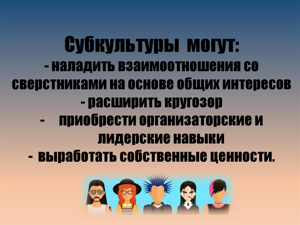 Cубкультуры могут:- наладить взаимоотношения cо