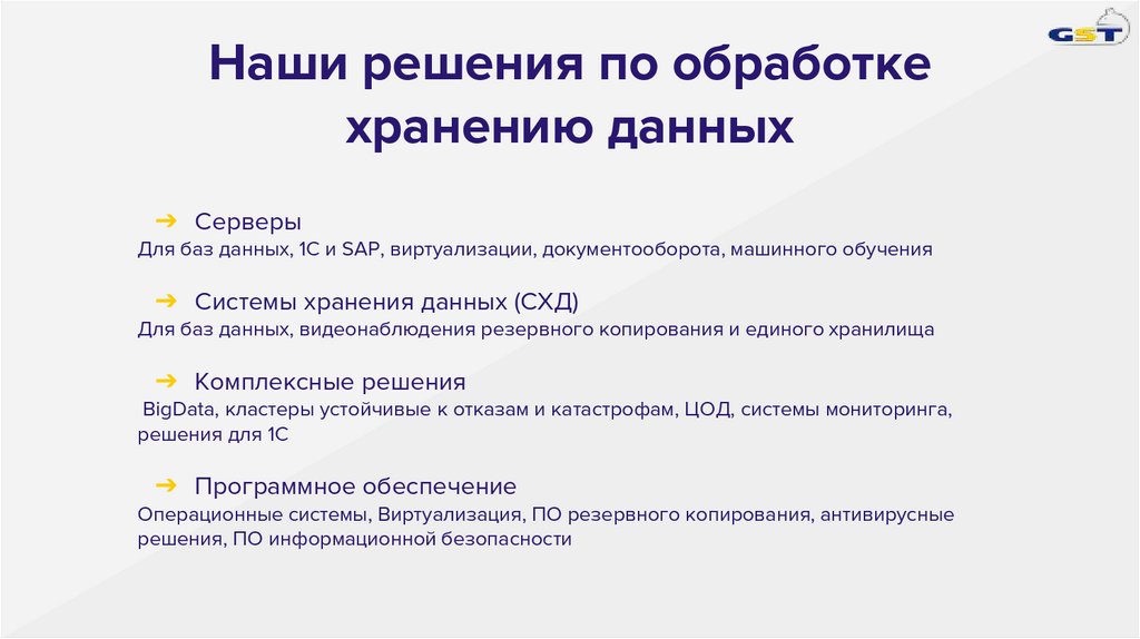 Наши решения по обработкехранению данных