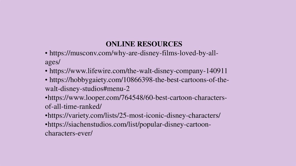 ONLINE RESOURСES• https://musconv.com/why-are-disney-films-loved-by-allages/