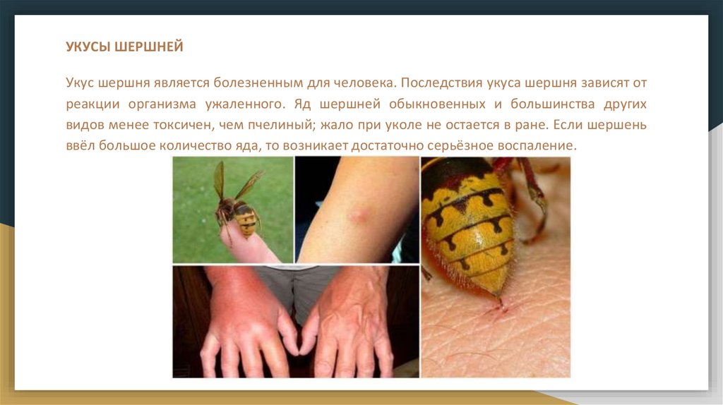 реакции организма ужаленного. Яд шершней обыкновенных и большинства других