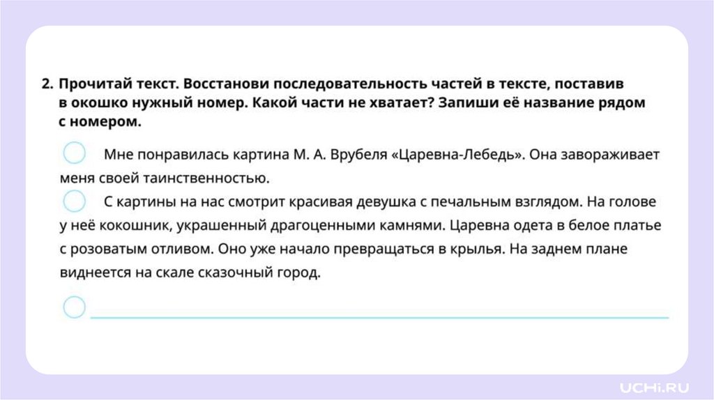 Сочинение по картине М. А. Врубеля «Царевна-Лебедь»