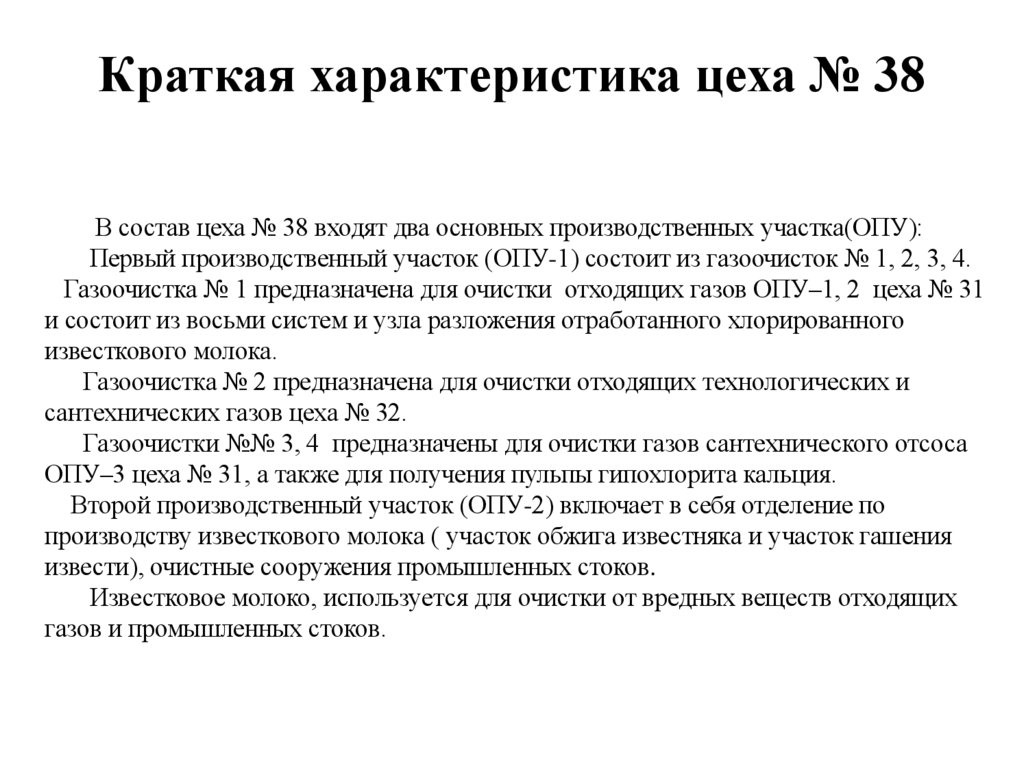 Краткая характеристика цеха № 38В состав цеха № 38 входят два основных производственных участка(ОПУ):