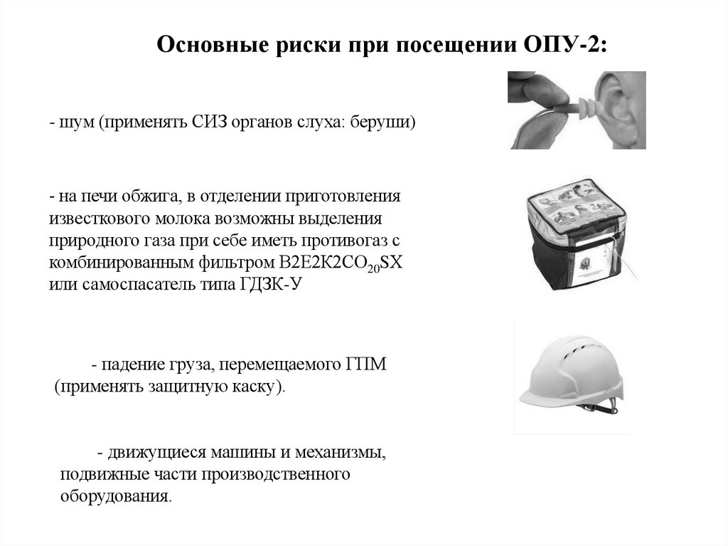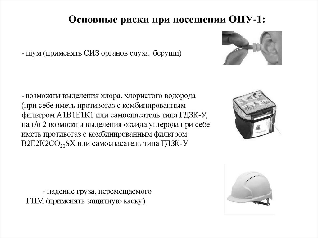 Основные риски при посещении ОПУ-1:- шум (применять СИЗ органов слуха: беруши)
