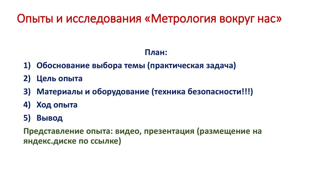 Опыты и исследования «Метрология вокруг нас»План: