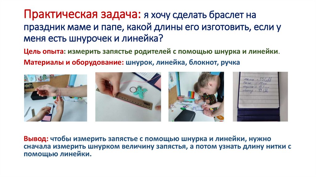 Цель опыта: измерить запястье родителей с помощью шнурка и линейки.