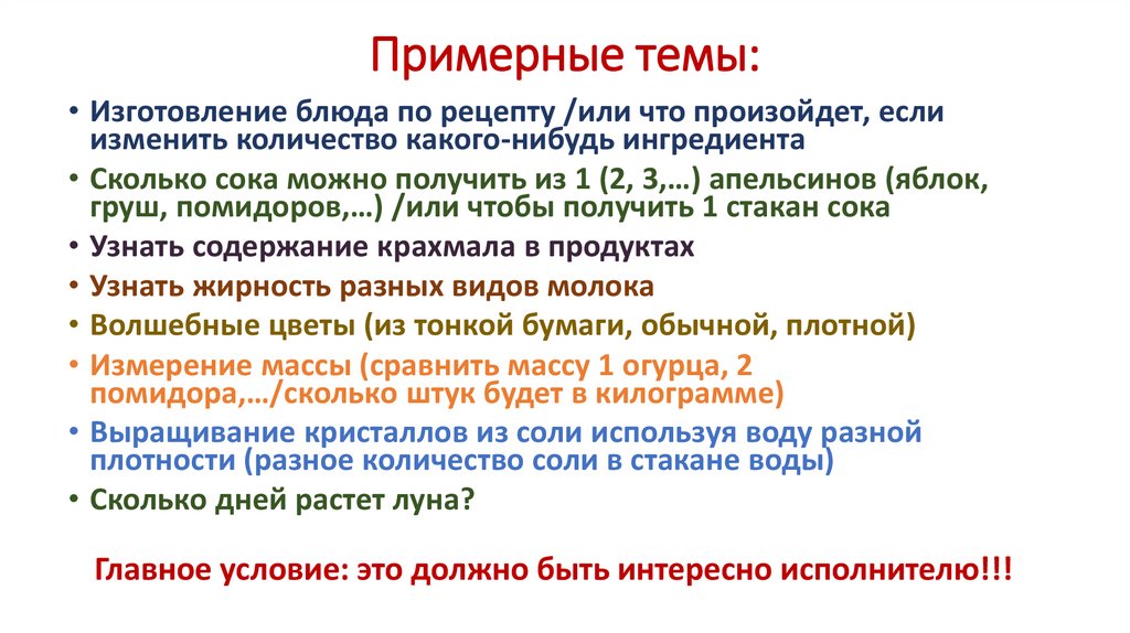 Примерные темы:• Изготовление блюда по рецепту /или что произойдет, если