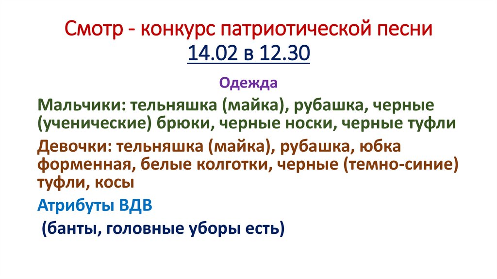 Смотр - конкурс патриотической песни14.02 в 12.30