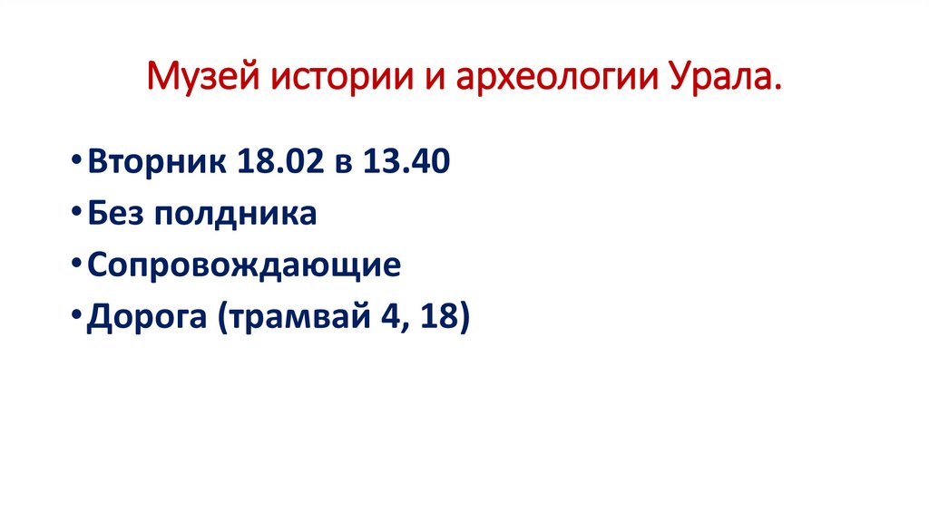 Музей истории и археологии Урала.• Вторник 18.02 в 13.40