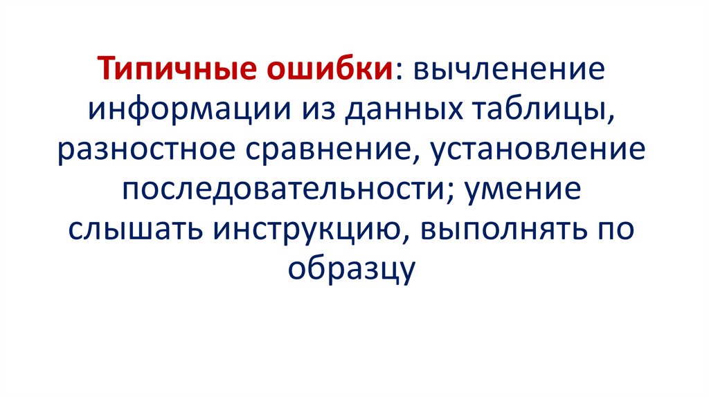 Типичные ошибки: вычленениеинформации из данных таблицы,