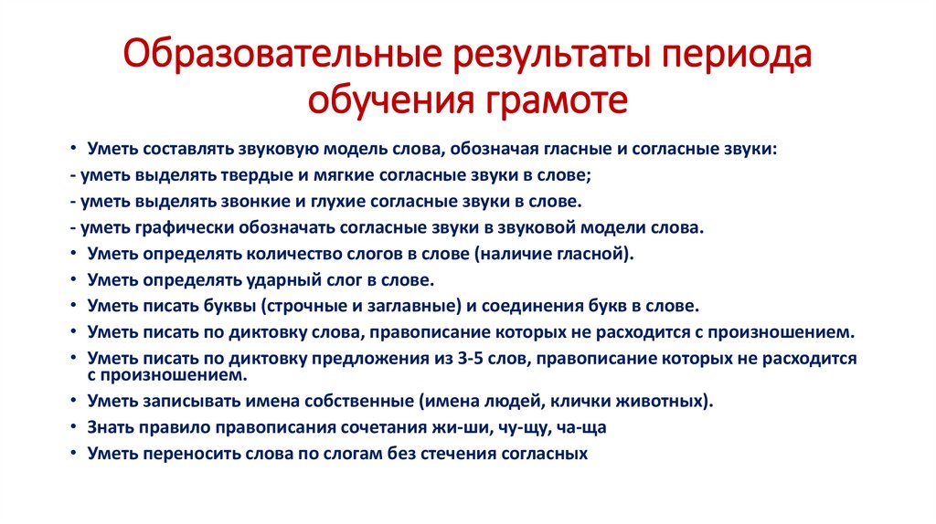 Образовательные результаты периодаобучения грамоте