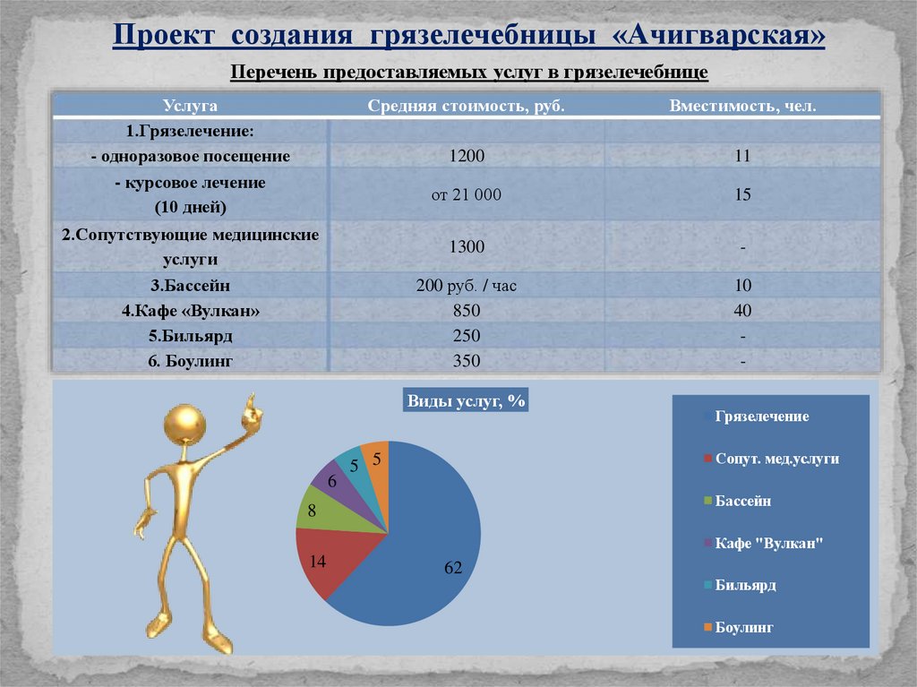 Проект создания грязелечебницы «Ачигварская»Перечень предоставляемых услуг в грязелечебнице