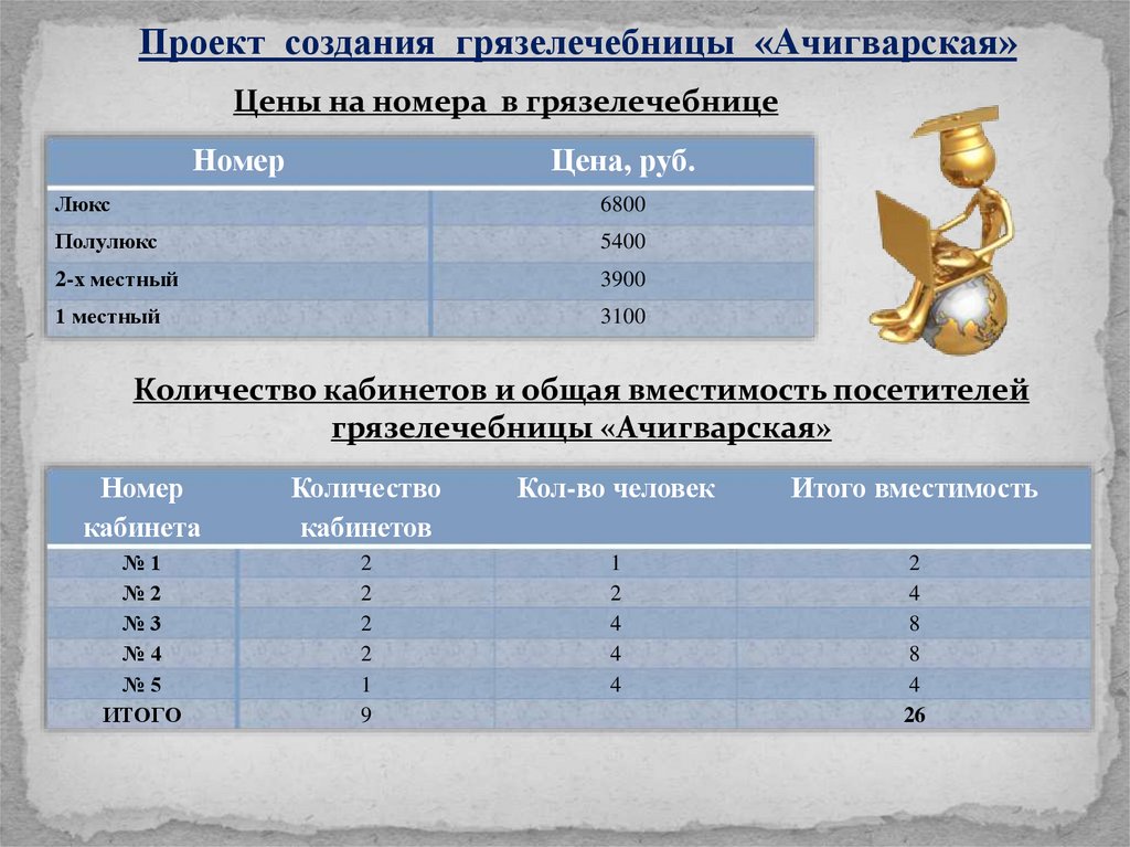 Проект создания грязелечебницы «Ачигварская»Цены на номера в грязелечебнице