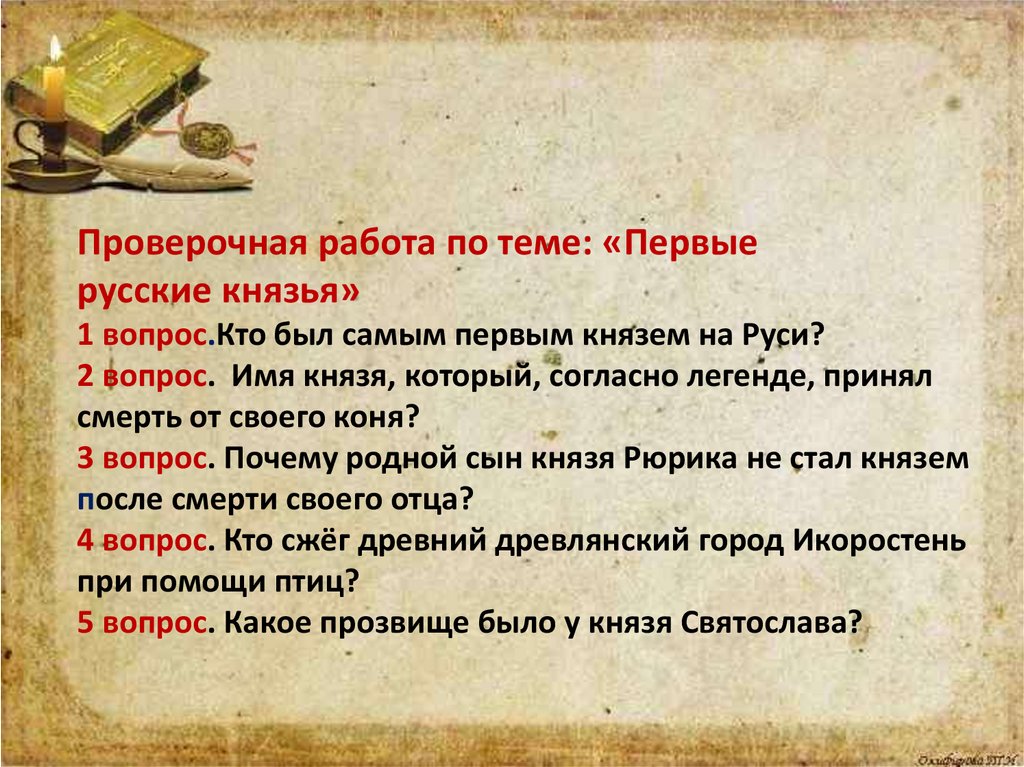 2 вопрос. Имя князя, который, согласно легенде, принял