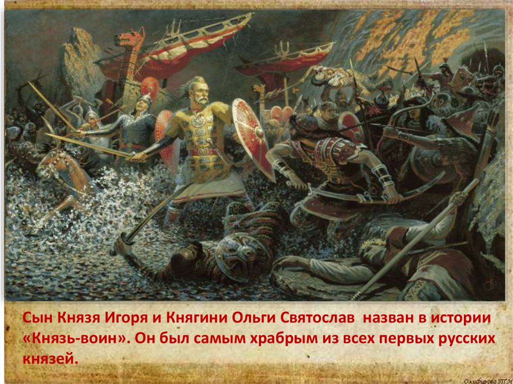 Сын Князя Игоря и Княгини Ольги Святослав назван в истории«Князь-воин». Он был самым храбрым из всех первых русских