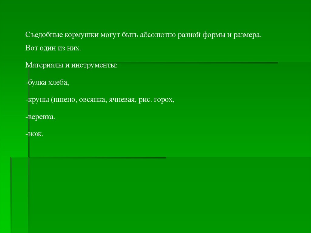 Съедобные кормушки могут быть абсолютно разной формы и размера.Вот один из них.