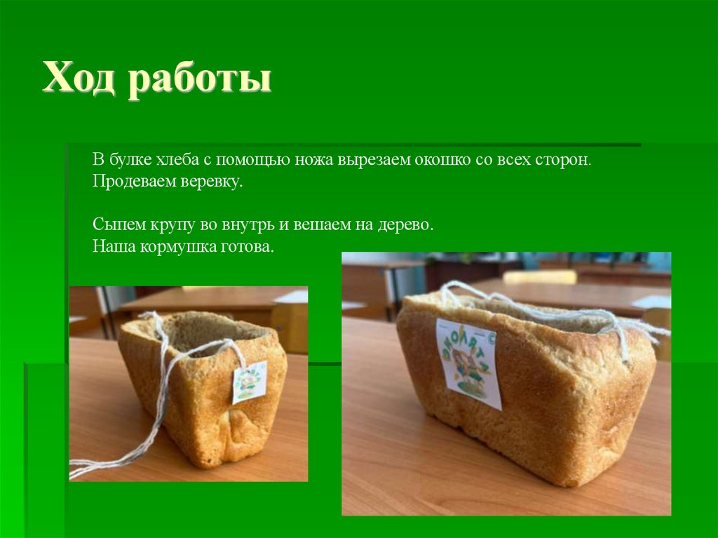 Ход работыВ булке хлеба с помощью ножа вырезаем окошко со всех сторон.