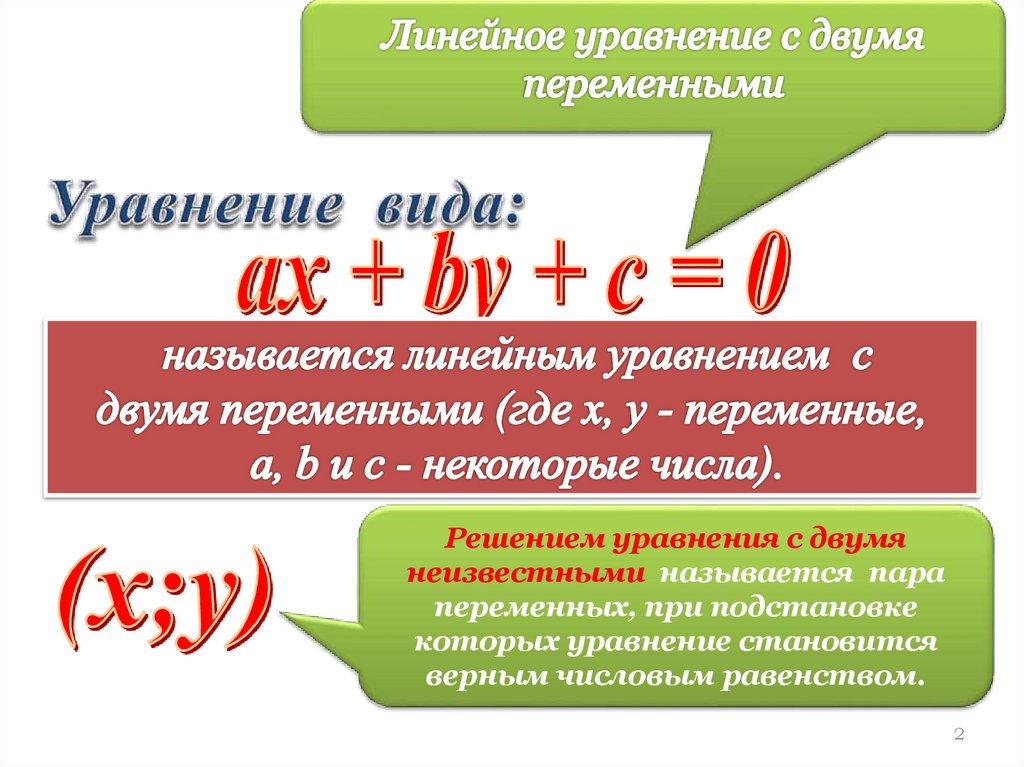 Решением уравнения с двумянеизвестными называется пара