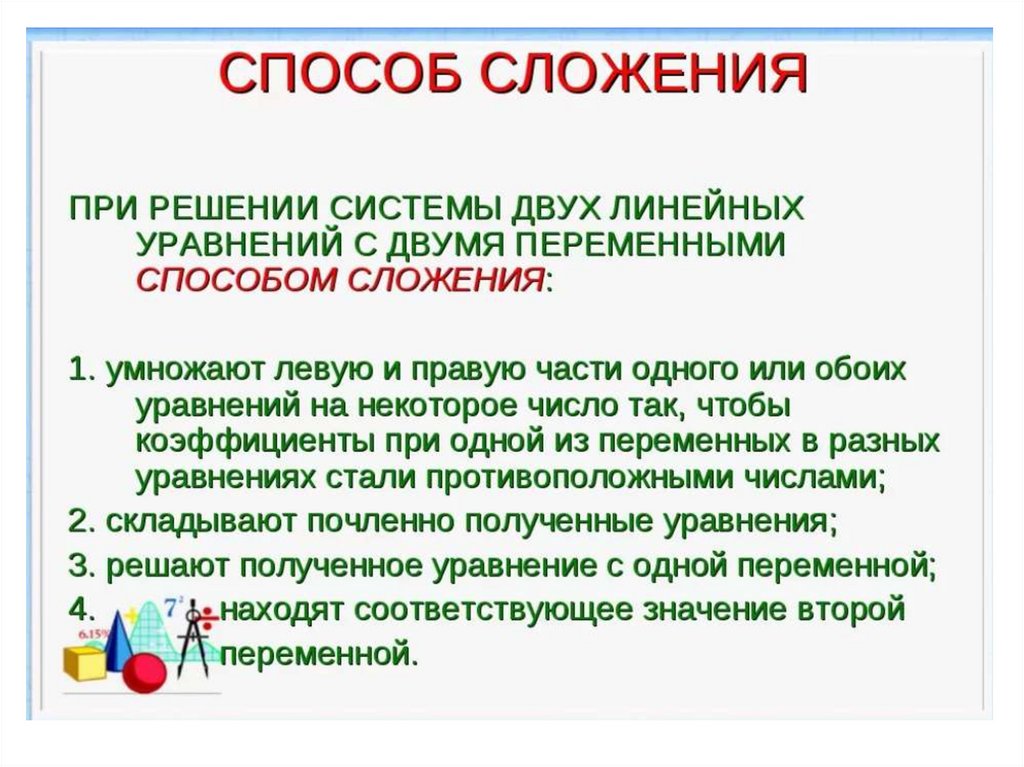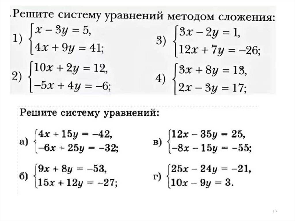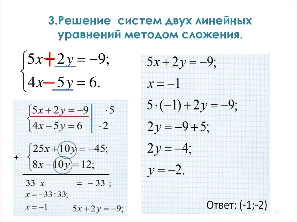 3.Решение систем двух линейныхуравнений методом сложения.