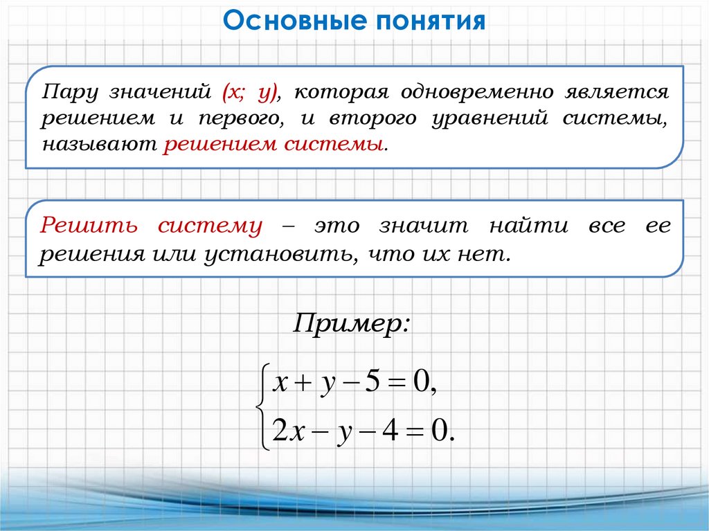 Основные понятияПару значений (х; у), которая одновременно является