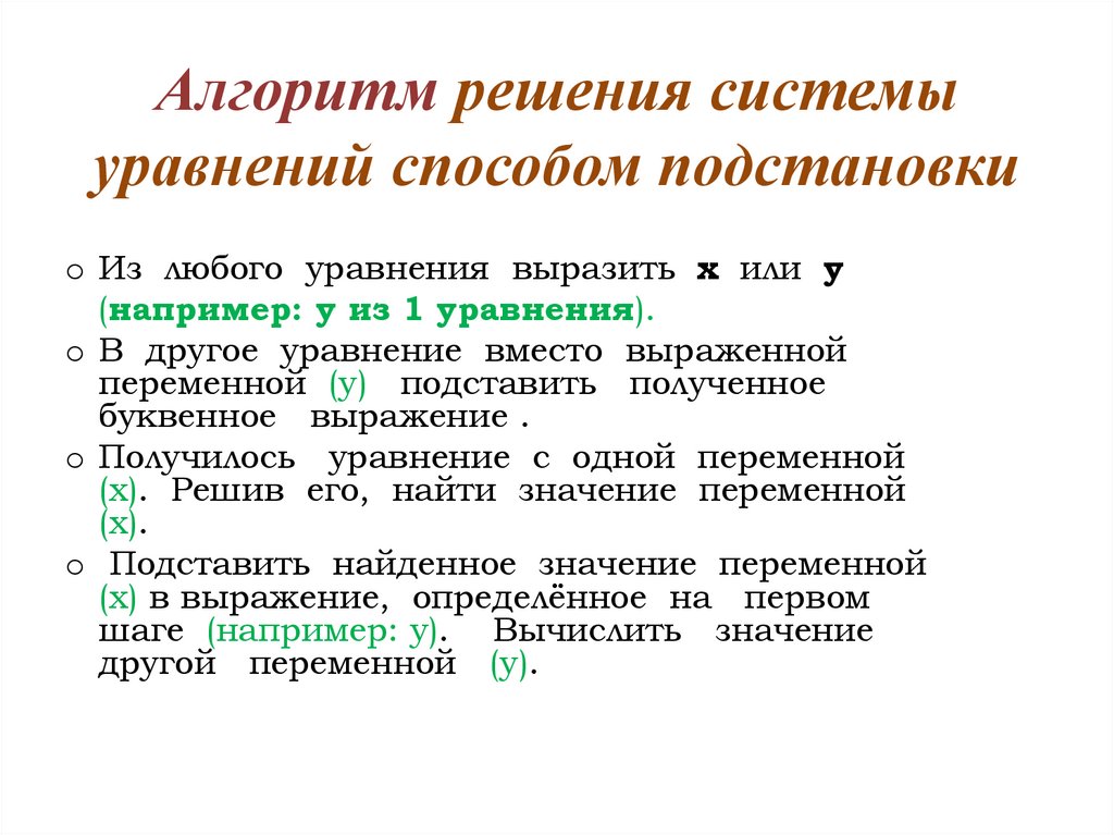 Алгоритм решения системыуравнений способом подстановки