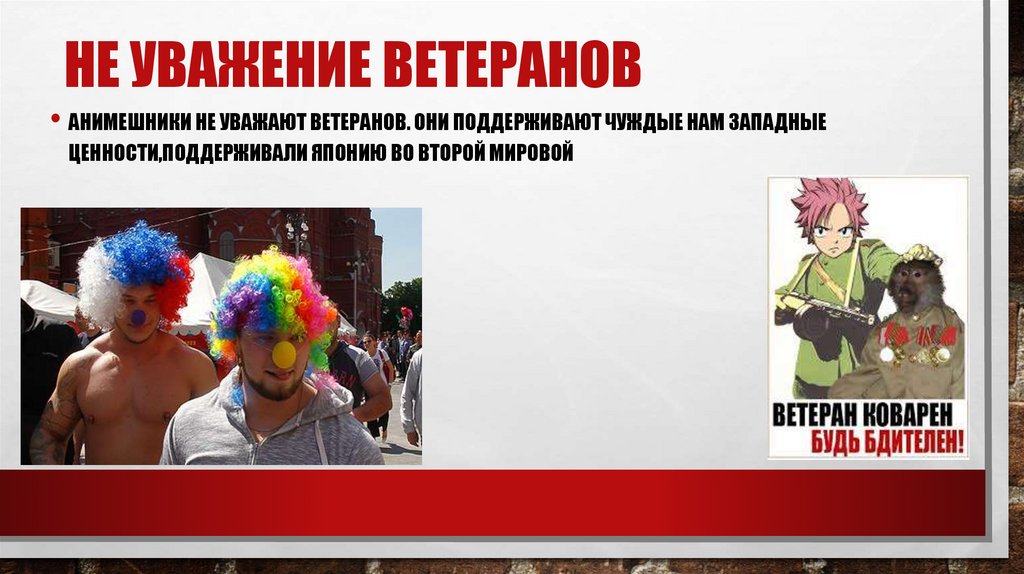 НЕ УВАЖЕНИЕ ВЕТЕРАНОВ• АНИМЕШНИКИ НЕ УВАЖАЮТ ВЕТЕРАНОВ. ОНИ ПОДДЕРЖИВАЮТ ЧУЖДЫЕ НАМ ЗАПАДНЫЕ