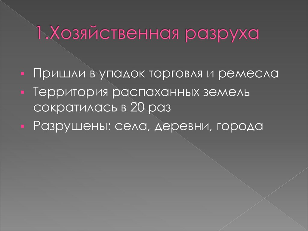 Пришли в упадок торговля и ремеслаТерритория распаханных земель