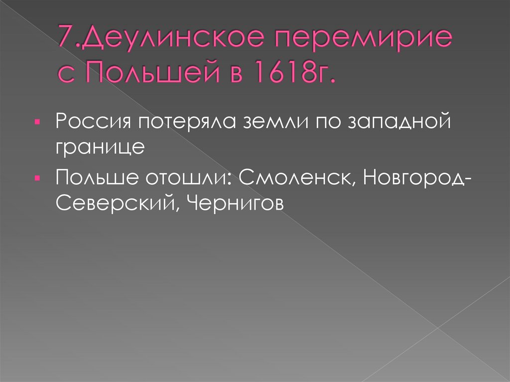 Польше отошли: Смоленск, НовгородСеверский, Чернигов