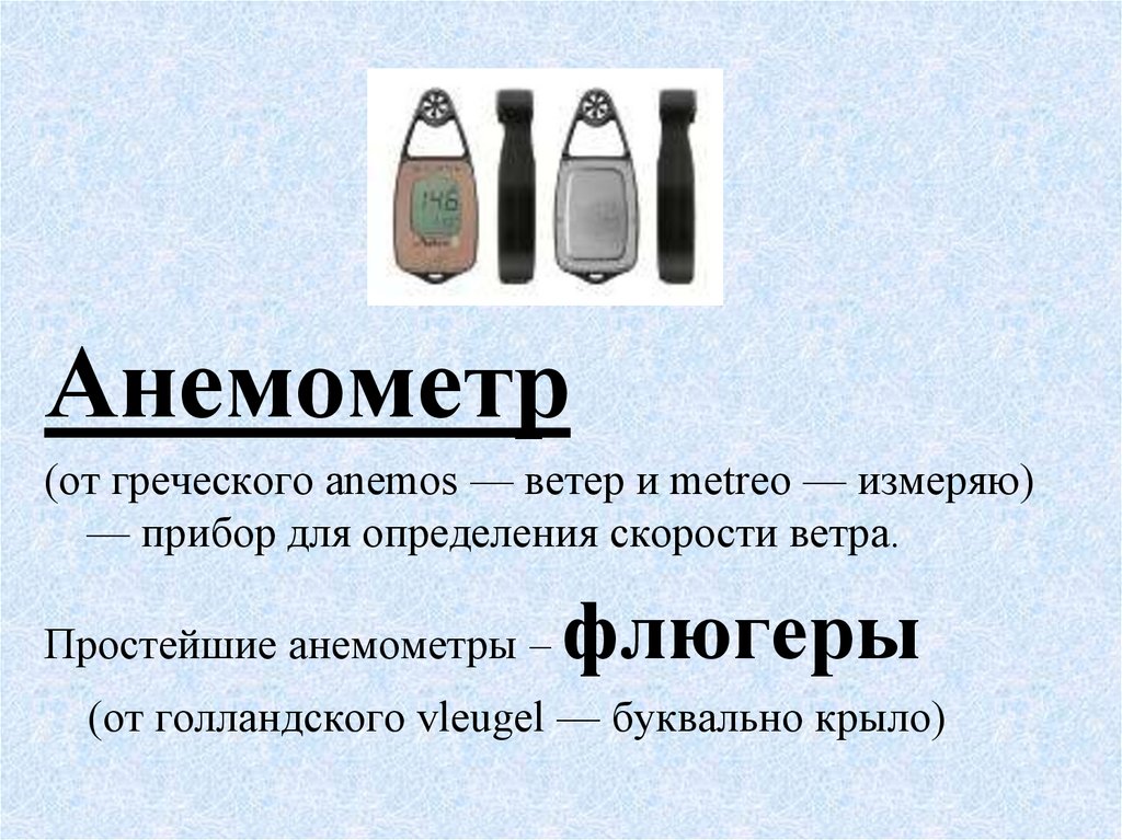Анемометр(от греческого anemos — ветер и metreo — измеряю)