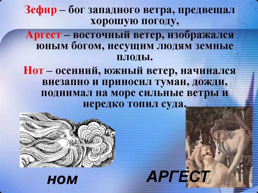 Зефир – бог западного ветра, предвещалхорошую погоду,