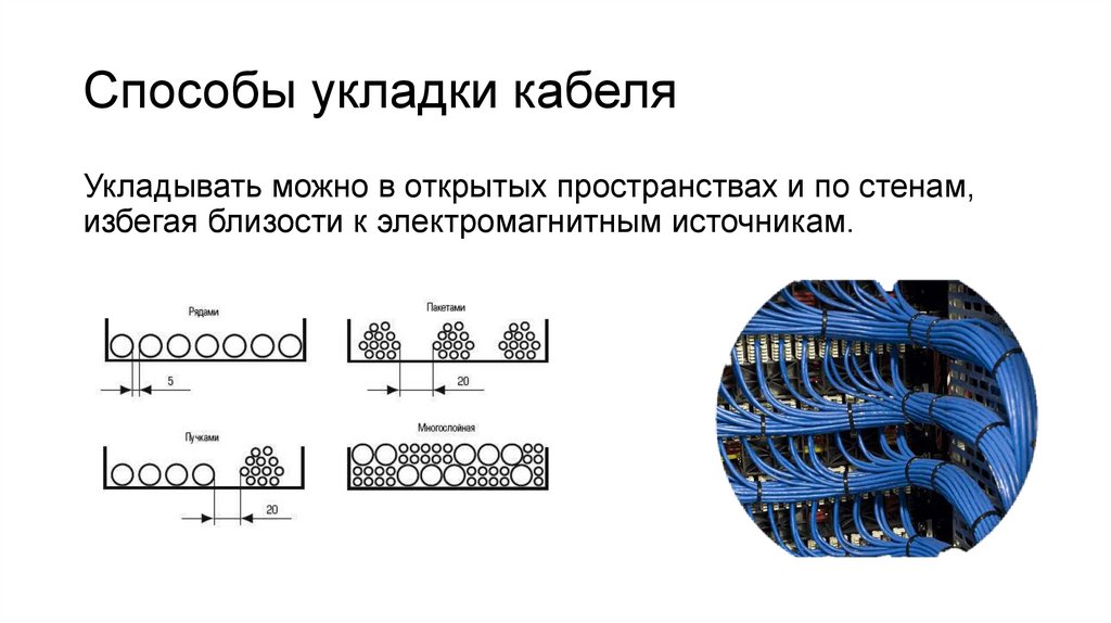 Способы укладки кабеляУкладывать можно в открытых пространствах и по стенам,
