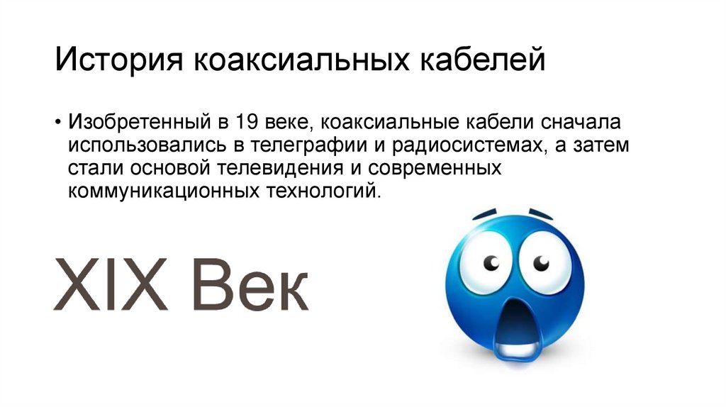 История коаксиальных кабелей• Изобретенный в 19 веке, коаксиальные кабели сначала