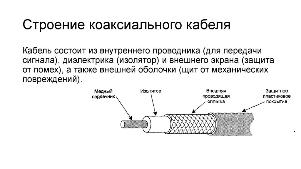 Строение коаксиального кабеляКабель состоит из внутреннего проводника (для передачи