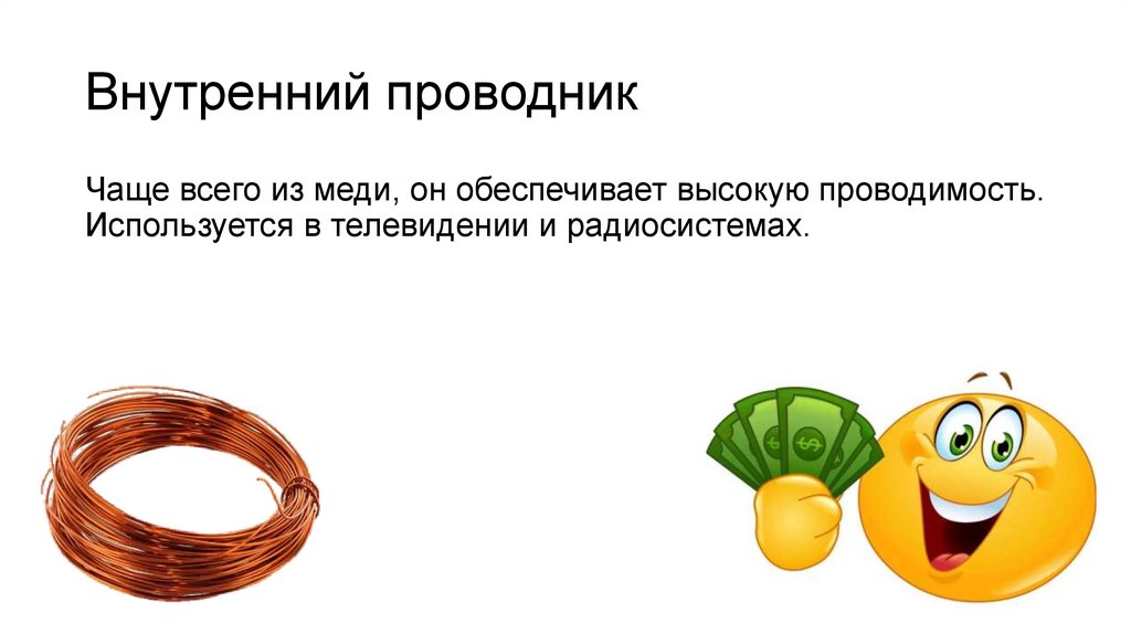 Внутренний проводникЧаще всего из меди, он обеспечивает высокую проводимость.