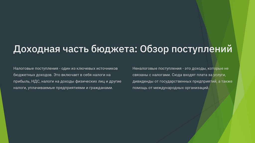 Доходная часть бюджета: Обзор поступленийНалоговые поступления - один из ключевых источников