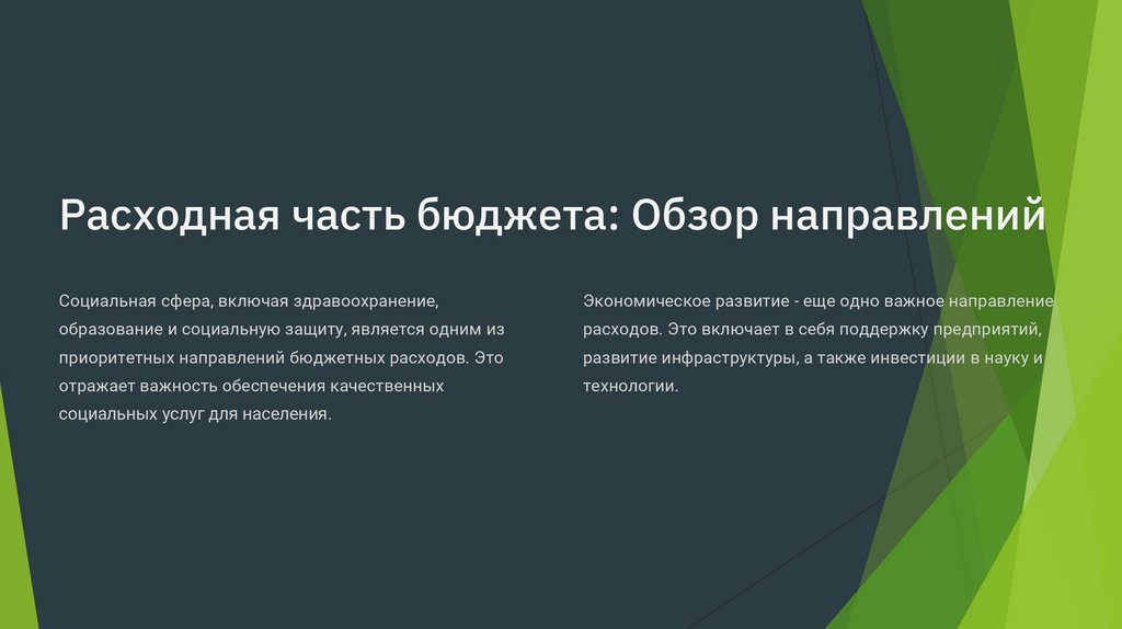 Расходная часть бюджета: Обзор направленийСоциальная сфера, включая здравоохранение,