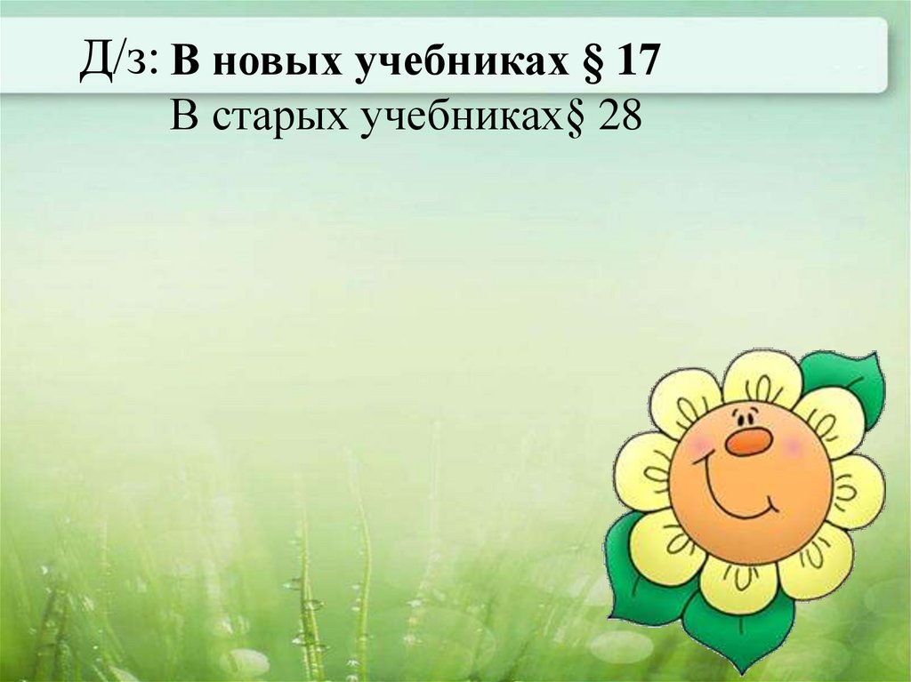 Д/з: В новых учебниках § 17В старых учебниках§ 28