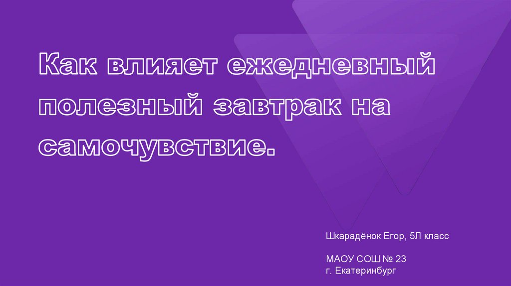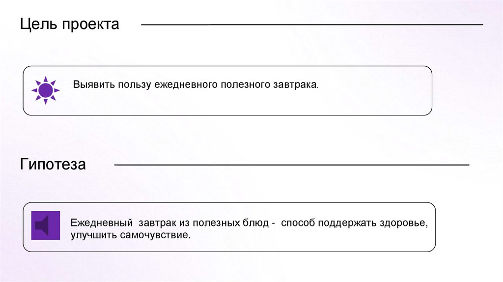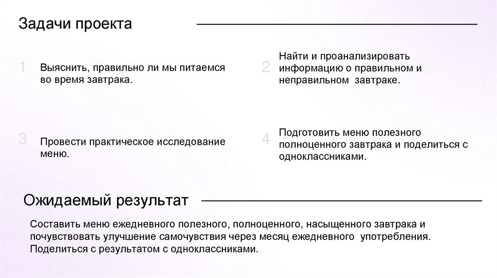 Цель проектаВыявить пользу ежедневного полезного завтрака.