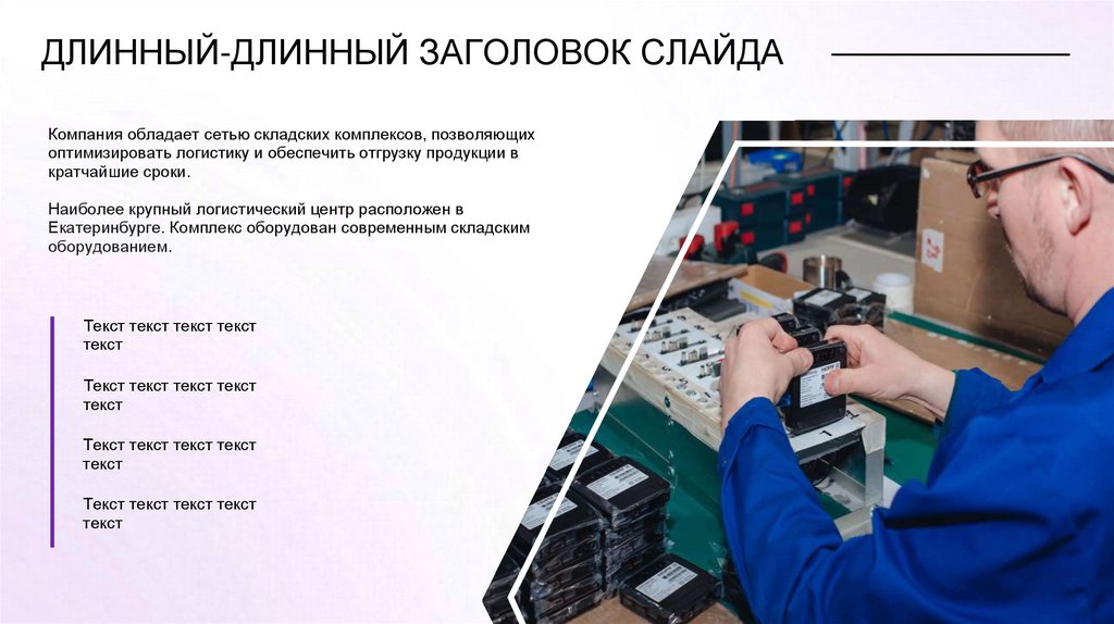ДЛИННЫЙ-ДЛИННЫЙ ЗАГОЛОВОК СЛАЙДАКомпания обладает сетью складских комплексов, позволяющих