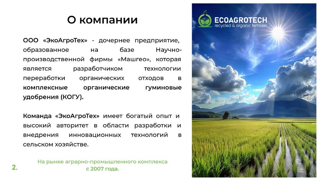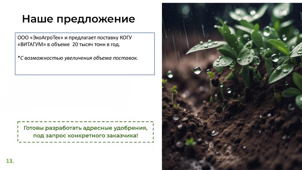 ООО «ЭкоАгроТех» и предлагает поставку КОГУ«ВИТАГУМ» в объеме 20 тысяч тонн в год.