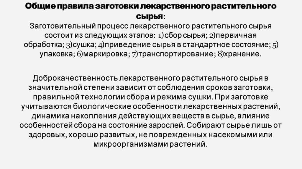 Общиеправилазаготовкилекарственногорастительногосырья: