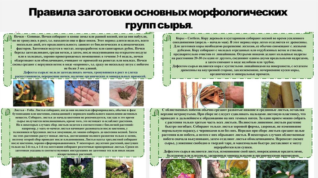 Правилазаготовкиосновныхморфологическихгруппсырья.