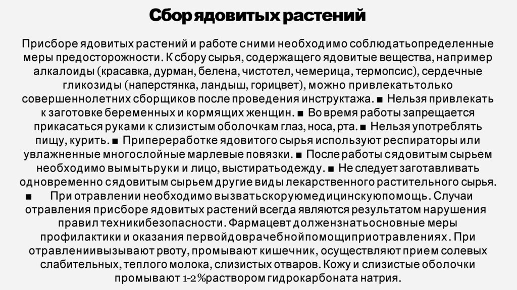 меры предосторожности. К сбору сырья, содержащего ядовитые вещества, например