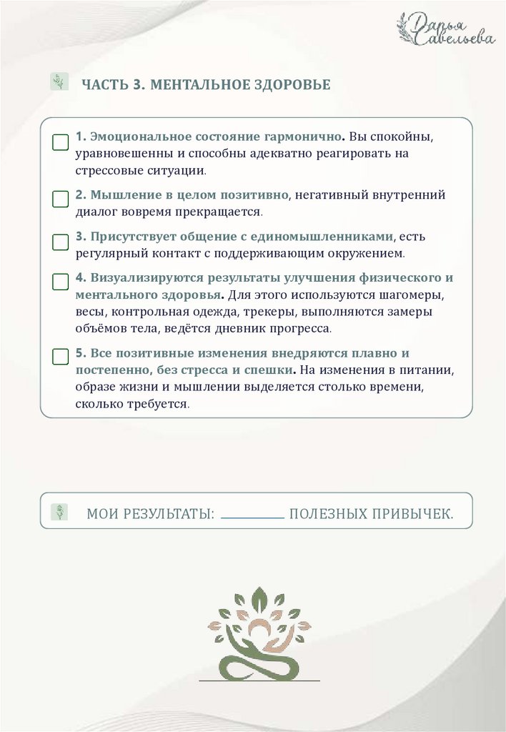ЧАСТЬ 3. МЕНТАЛЬНОЕ ЗДОРОВЬЕ1. Эмоциональное состояние гармонично. Вы спокойны,