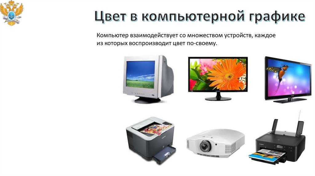 Компьютер взаимодействует со множеством устройств, каждоеиз которых воспроизводит цвет по-своему.