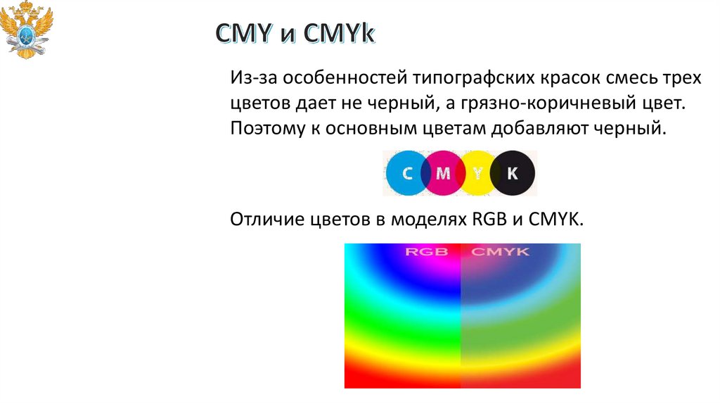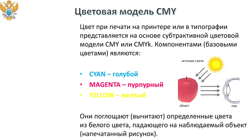 Цвет при печати на принтере или в типографиипредставляется на основе субтрактивной цветовой