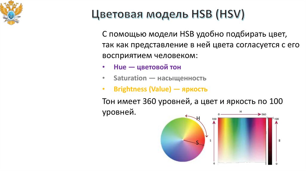 C помощью модели HSB удобно подбирать цвет,так как представление в ней цвета согласуется с его
