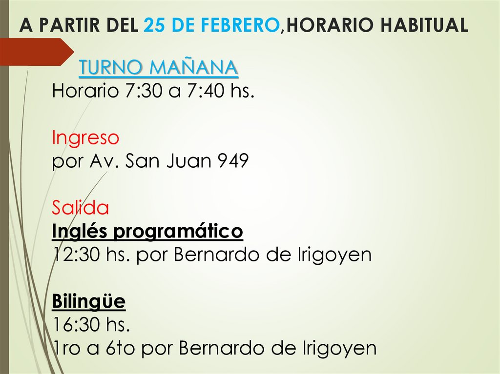 A PARTIR DEL 25 DE FEBRERO,HORARIO HABITUALTURNO MAÑANA